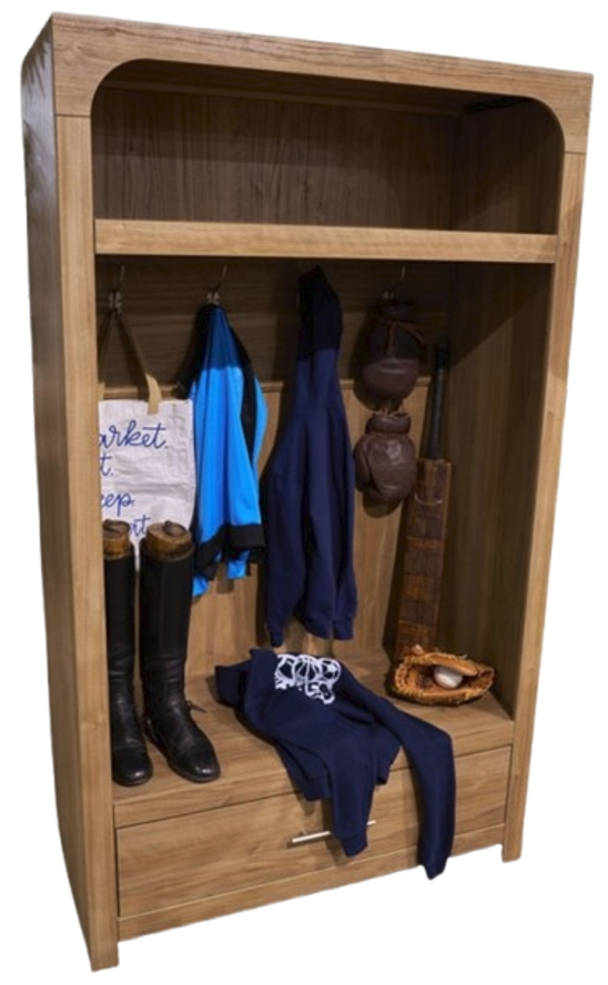 One open shelf, coat hooks, and one spacious drawer